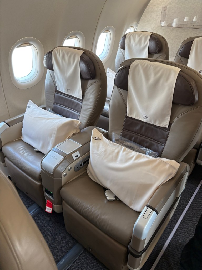 こちらが今回僕が利用するプリファードシートです。真ん中席で、両隣は日本人でもブルネイの方でもない感じでした。