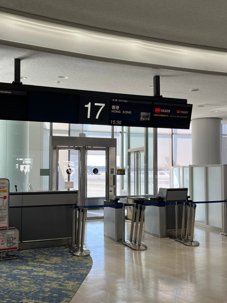 香港航空の成田空港の出発ターミナルは第1ターミナル。香港航空は便が沢山あるようでチェックインカウンターに行くとまだ時間じゃないと言われた。