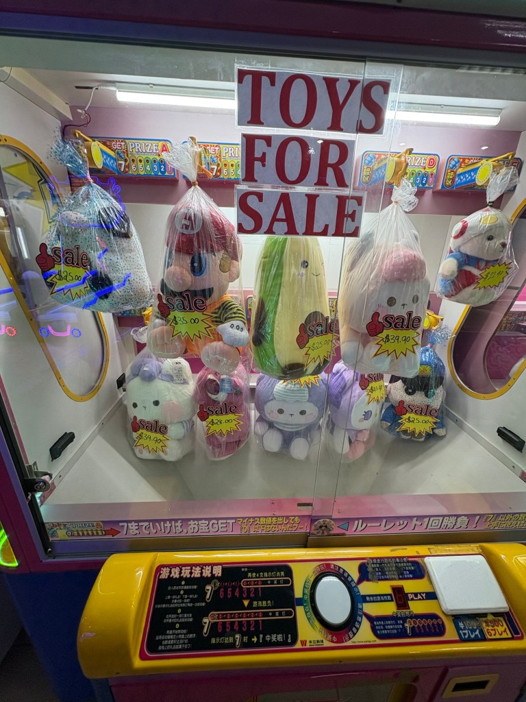 恐らくここにあるものは日本で引退したものを輸入してそのまま使っているのだろう。ただ一部クレーンゲームには中国語が書いたものもあった。
