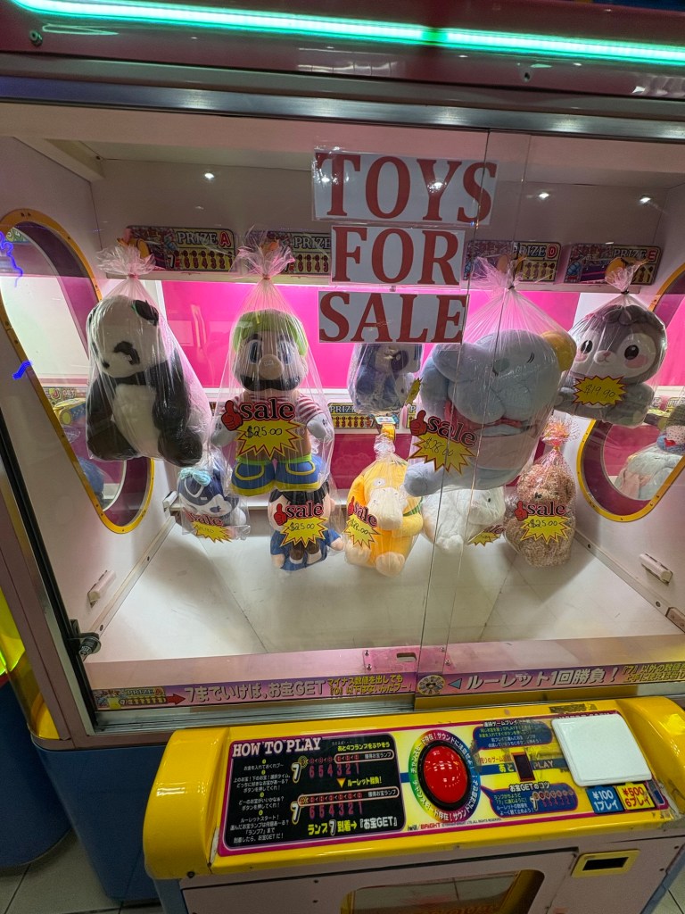 クレーンゲームにも日本語がそのまま残り、100円や500円といった表記もそのままなのである。