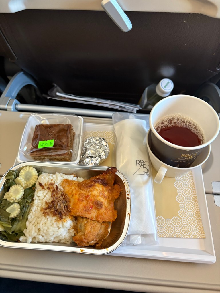 ロイヤルブルネイ航空、国営の航空会社というだけあってサービスはかなり行き届いており、機内食、シート、機体全般的に非常に快適にフライトすることができました。
