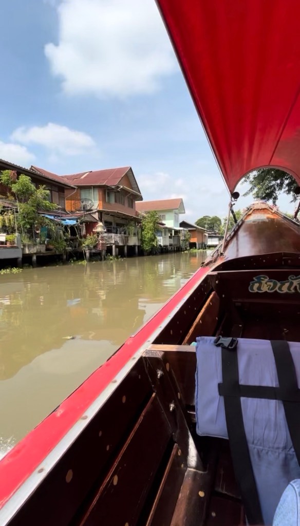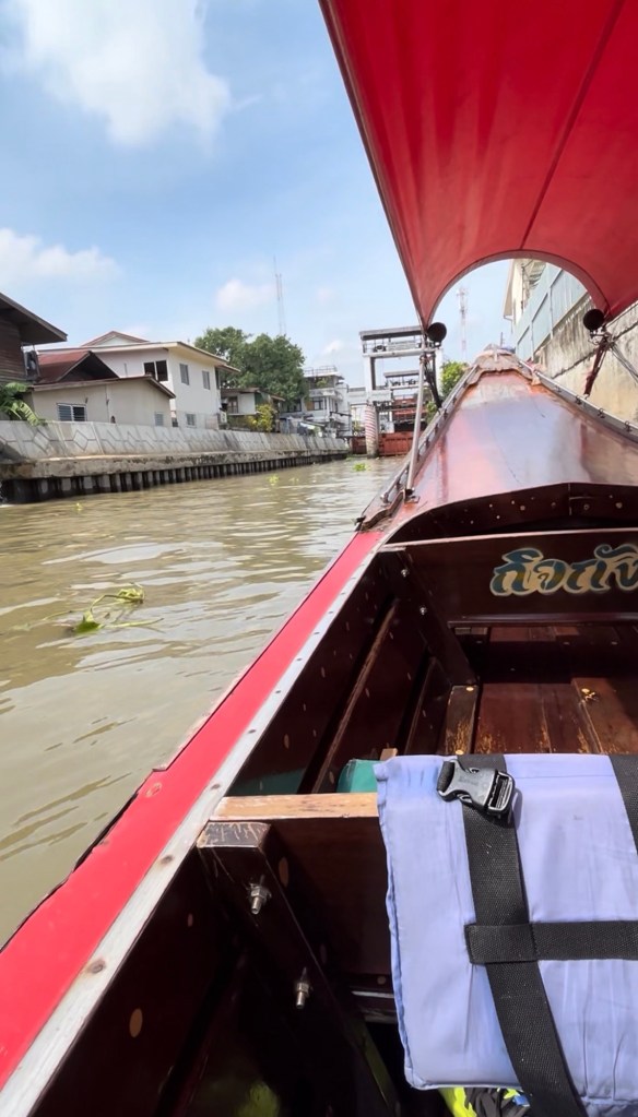 トゥクトゥクで5分ほど走った後、小さな木造の港に連れて行かれ、これまたそこにある木造の舟に乗るように言われました。
